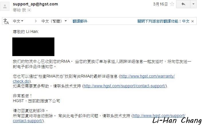 原本以為這硬碟已經過了保固了,就放著大概有3~4個月,某天想到查詢一下好了,應該可以從硬碟的號碼查到保固,果然查到了,而且保固到2017!!!!