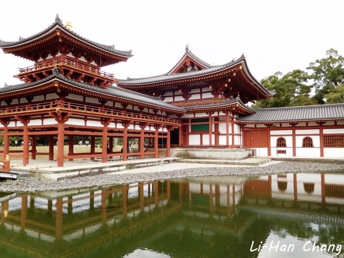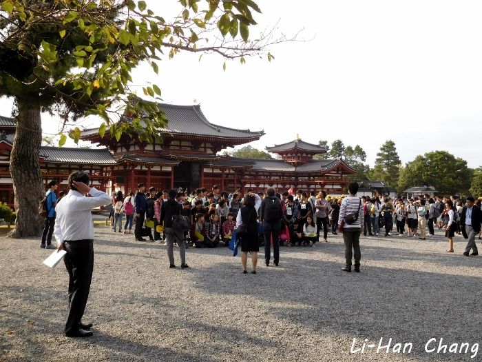 逛完出來都沒人了,因為小朋友被趕著回家了就合照一下啦~右邊那張是平等院的背面