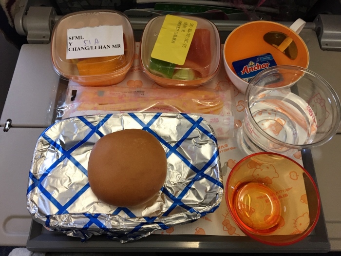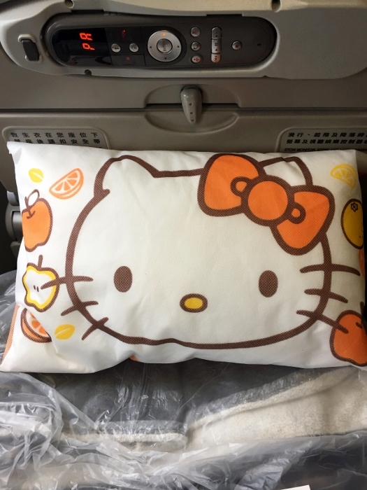 整台飛機都是Hello kitty,枕頭、餐具、各式各樣的包裝都是