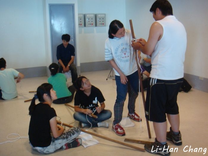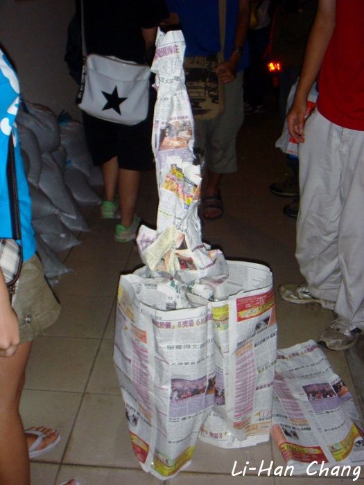 白天的活動,有一些團隊任務,像是用現有的材料搭出高塔,組裝的過程中是比快,反正是一片混亂~ 我記得我們在停車場進行。